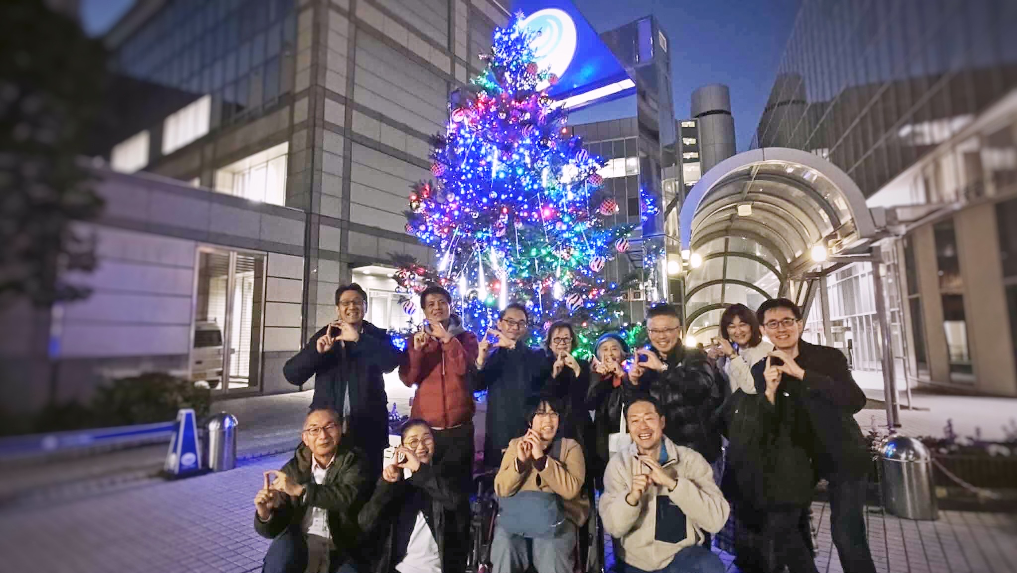 終了後は、イルミネーション煌くクリスマスツリーの前でパシャリ。