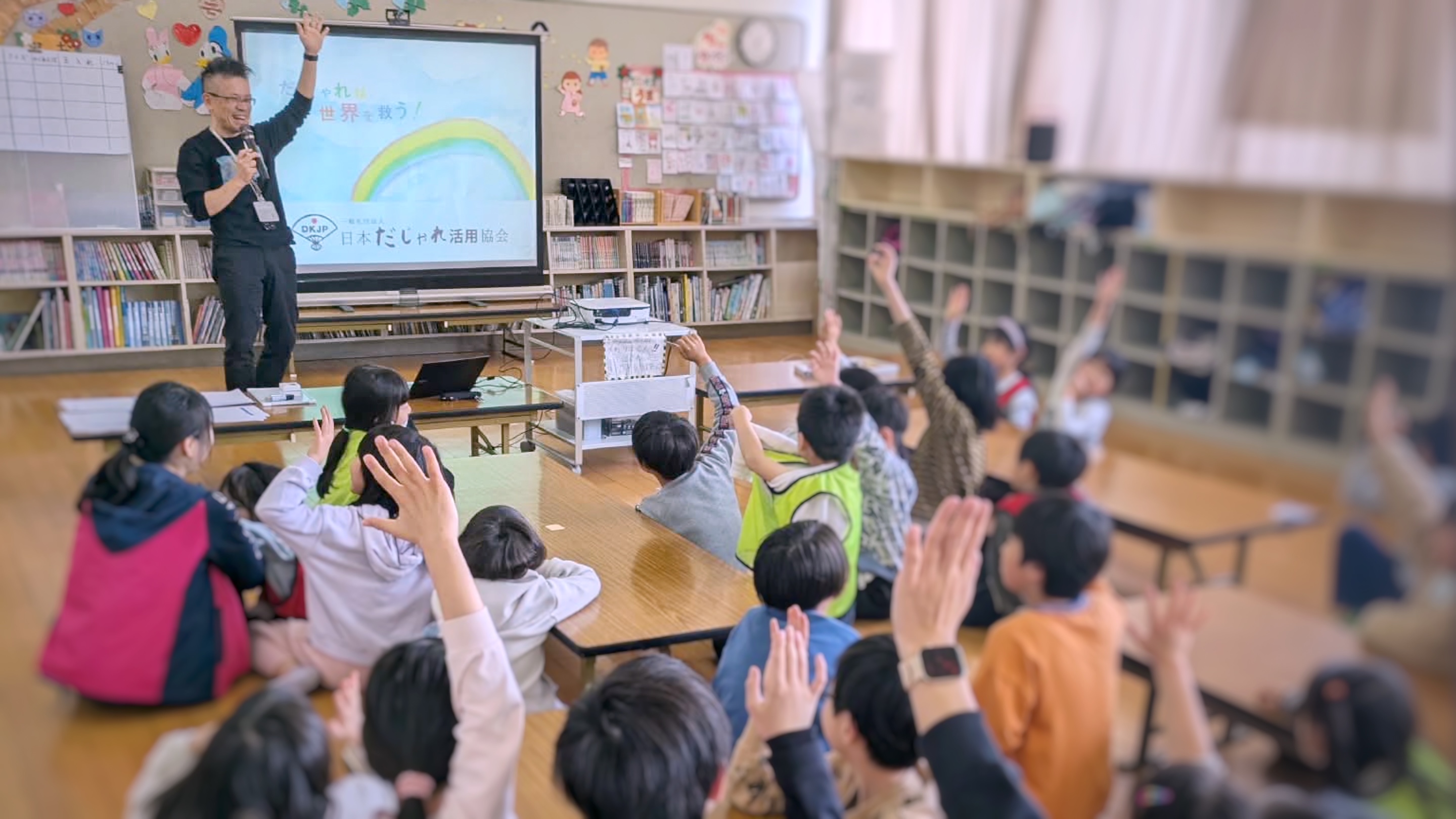 「最初はやる気のなかった子どもたちも最後には楽しそうにダジャレを言って笑っている姿が見れてとても嬉しくなりました。だじゃれは世界を救えると行事を通して感じました!ぜひまたお願いいたします!!」